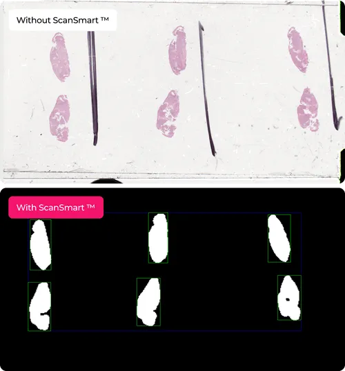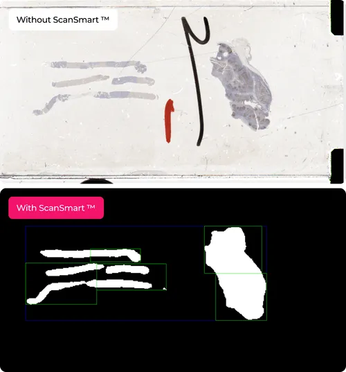 Advanced tissue detection ignores debris, pen marks, and artifacts while capturing every critical detail